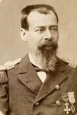 Francisco Vidal Gormaz (July 1, 1837 in Santiago, Chile – February 5, 1907) was a Chilean naval officer and hydrographer who explored the coasts of Chile including some river systems and lakes. During the 1850s he explored and surveyed several times Maullín River with Francisco Hudson.[1] Before being lost at sea in 1859 Hudson is thought to have been a major influence on Vidal Gormaz.[1] He participated in the Occupation of the Araucanía performing reconnaissance missions in the coasts of Arauco and Toltén. In 1863, he was named director of the Maritime School of Ancud (Escuela Maritima de Ancud). In 1874, he became the first director of the newly created Hydrographic Office (Oficina Hidrográfica). In 1884, he became General Inspector of Lighthouses and participated in the International Meridian Conference. Because of his neutrality during the 1891 Chilean Civil War he was removed from his post as director of the Hydrographic Office. He was named assistant at the Sea Ministry (Spanish: Ministerio de Marina) in 1894 and retired from the navy in 1899.
