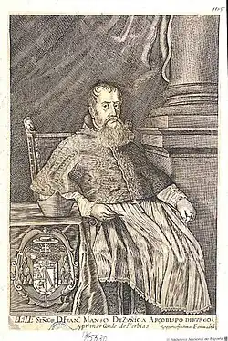 Francisco Manso de Zuñiga y Sola (1587 – December 27, 1655) was the I Count of Hervías and a Spanish Catholic prelate who served as Archbishop of Burgos (1640–1655), Archbishop (Personal Title) of Cartagena (1637–1640), and as Archbishop of Mexico (1627–1634).[1][2]