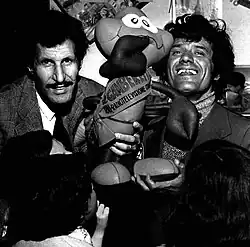 Together, they appeared in 112 films.[2] Considered at the time as protagonists of B movies, they were subsequently reevaluated by critics for their comedy and creative abilities, becoming the subject of study.[3][4] The huge success with the public is evidenced by the box office earnings, which in the 1960s, represented 10% of the annual box office earnings in Italy.[5]