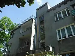 2 Francuska StreetHouse at 2 Francuska Street – the Łepkowski villa from 1933 to 1934 designed by Lucjan Korngold and Piotr Maria Lubiński. Its most characteristic features are on the garden side, including a spacious terrace accessible via winding stairs.[25] From the beginning, the building received favorable reviews and was cited as an example of Le Corbusier's ideas.[26] It is considered one of the most valuable functionalist landmarks in Saska Kępa.[27]
