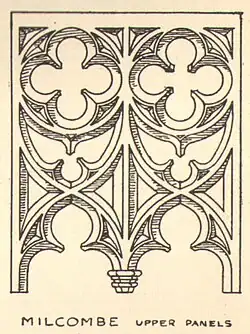 - Bishop's Cleeve. Choir stalls, 1928. Oak doors, 1929