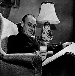 As the announcer on radio's The Milton Berle Show, he was a comic foil for Berle.[19][20] Addressing the star of the show as "Berle", Gallop, who was known on the show as "Mr. Gallop, sir",[4] would deliver a series of pointed one-liners.[11][21][22] The "voice from the clouds" concept originated with writer Goodman Ace on the Berle radio show, but was never fully developed until Gallop became Perry Como's television announcer and Ace began writing for Como. Despite a friendship between Gallop and Berle, the working conditions on the radio show were such that Gallop quit after every broadcast.[23] Gallop was also a "Communicator" for the NBC Radio show Monitor on Sunday afternoons from 1955–1960.[24][25]