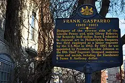 - ^ Staff. "Remembering a Master Engraver: Frank Gasparro's Legacy Circulating Worldwide", National Public Radio, October 3, 2001. Accessed August 15, 2010.