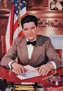 He served until 1944, when he first won election as governor of Ohio, the state's first Roman Catholic in that position. Lausche served as governor from 1945 to 1947, when he narrowly lost to Thomas J. Herbert. Lausche defeated Herbert in a 1948 rematch, however, and served four consecutive two-year terms from 1949 to 1957. He was reelected as governor in 1950, defeating state Treasurer Don H. Ebright; in 1952, defeating Cincinnati Mayor Charles Phelps Taft II; and in 1954, defeating state Auditor Jim Rhodes, who later became governor himself. Lausche resigned in early 1957, having won election to the United States Senate in November 1956, unseating incumbent Republican George Bender.[11][12]