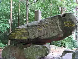 One tourist attraction is the landmark built in the 1860s on the 459-metre-high Roßrück near Waldleiningen by the Kingdom of Bavaria which became known locally as the Palatine World Axis (Pälzer Weltachs). It became the subject of local poet, Paul Münch, in his well-known Palatine poem. In 1964 a passage from his poem was inscribed on a nearby rock.[6]