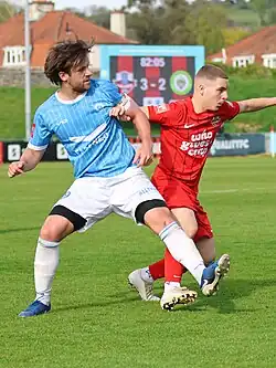 ![]() Raymond (left) playing for Cray Wanderers in April 2025 | |||