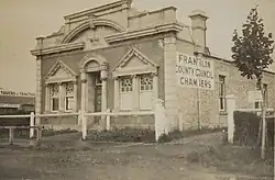 In 1915 the approximate rateable value of the county was £3,500,000.[2] In 1923 Franklin County covered 620 sq mi (1,600 km2) and had a population of 9,730, with 183 mi (295 km) of gravel roads, 252 mi (406 km) of mud roads and 400 mi (640 km) of tracks.[3]