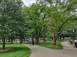In September 2021, Franklin Square reopened after a year-long, $21 million renovation.[5] During the renovation, 63 trees were replaced, and new landscaping, a children's play garden, flexible seating, and art exhibit spaces were added.[6] A new cafe building with public restrooms was also added to the southern end of the park.