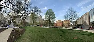 ![]() Franklin Square in 2022. One Franklin Square, the tallest commercial building in Washington, D.C., and the Franklin School, are visible in the background. | |