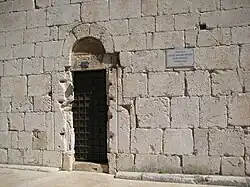 Frankopan Castle on Kamplin was raised by Croatian noble family of Frankopan through several centuries and several generations. After the death of the first Count (knez) of Krk Dujam I Krčki, his sons continue to dominate over the island and the town of Krk. They left first architectural traces in the town of Krk. The oldest part of fortification is the square tower with the diocese, in which Frankopans courtroom was located. The inscription on the lunette over the entrance confirms that the building was raised in 1191, during the time of Bishop John and counts Vid I and Bartol I (Dujam's sons), with the help of the entire municipality.[2]