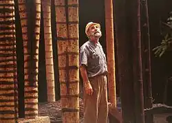 In the 1970s, Kracjberg gained international recognition in the context of environmental movements garnering attention at the same time.[1] Krajcberg lived in the south of Bahia from 1972 on, where he kept his studio on the Sítio Natura farm in Nova Viçosa.[5] On Sítio Natura, he creates housing on a pequi tree with different raw materials, expressing through this his desire to remain secluded from humanity, which he viewed as destructive. Five additional buildings are meant to be added to his studio and turned into a museum, as the site presently houses over 300 pieces of work by Kracjberg.[6]