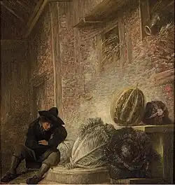 He was primarily known for his paintings of rural life, but also produced Italian-style landscapes and religious works. At the beginning of his career, he also painted animals.[2] A large number of his works in Berlin, Saint Petersburg and Budapest were destroyed during World War II.[1] Only twenty of his works are known to exist. These may seen at (among others) the Musée des Beaux-Arts de Dunkerque, the National Museum, Warsaw and the Musée Fabre in Montpellier.