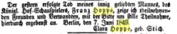 - ^ Schauer: Album des Königl. Schauspiels und der Königl. Oper zu Berlin unter der Leitung von August Wilhelm Iffland, Karl Grafen von Brühl, Wilhelm Grafen von Redern und Karl Theodor von Küstner für die Zeit von 1796-1851. Schauer, 1858, p. 104 (Franz Hoppé, p. 104, at Google Books)
