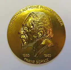 The Franz Schalk Gold Medal is a distinction of the Vienna Philharmonic awarded since 1963. It is named after the conductor, first director of the Vienna State Opera and co-founder of the Salzburg Festival Franz Schalk, whose 100th birthday was celebrated in 1963.