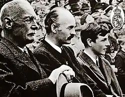 Franz has had a life partner since 1980, Thomas Greinwald, although they have never married.[16] In August 2011, the duke appeared at Prince George Frederick of Prussia's wedding, accompanied by Greinwald and his first cousin once removed – and future heir – Prince Ludwig. He and Greinwald first appeared publicly as a couple in Munich in 2023.[17] The heir presumptive to the headship of the House of Wittelsbach is his brother Max Emanuel Herzog in Bayern. Because Max has five daughters but no sons, he is followed in the Bavarian line of succession by his and Franz's first cousin (second cousin in the male line) Prince Luitpold[18] and, in the next generation, by the latter's son Prince Ludwig of Bavaria (born 1982).