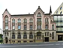 The Frascati neighbourhood was inhabited by many notables and dignitaries, among them nobles, financiers, business tycoons, generals and statesmen like the much-detested Nikolay Novosiltsev, the council commissar in the Congress Kingdom of Poland.[13] With the private gardens parceled in 1929, several modern villas were erected north of the Polish parliament, around today's Nullo, Frascati, Konopnicka and Senacka streets.[14] These were once owned or occupied by Warsaw's wealthiest and most important residents.[14][5] The majority of buildings and infrastructure survived the Second World War intact, particularity the ornate tenement houses at Wiejska Street.[15] It remained an exclusive suburb under the Polish People's Republic, frequently visited by heads of state and communist officials.[16] The large headquarters building of the Polish United Workers' Party (PZPR) was completed in 1952 on Frascati's northern edge.