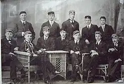 In 1913, a rift grew in the organization, resulting in the expulsion of eleven active members; these former members established Korporatsioon Ugala.[1] However, the university was occupied by the Germans during World War I and the corps was declared illegal.[1][3] Fraternitas Estica was the first student organization to join in the Estonian War of Independence, resulting in the deaths of 21 members.[1]
