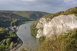 The right bank of the Meuse is dominated by Rocks at Freyr more than 100 m high, 340 million years old), from which one has an exceptional view of the estate.