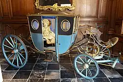 The rooms contain the ancient furniture of the Dukes of Beaufort-Spontin as well as traces of history left by royal guests (Louis XIV of France, Archduchess Maria-Christina, fifth child (and third to reach adult age) of Empress Maria Theresa of Austria, King Stanislas I), and the living memory of 20 generations, among which is a delightful children's coach (18th century) that won the first prize at Paris World Exhibition (1889).
