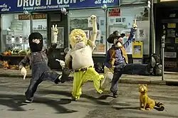 Fat Freddy's Drop, formed in the late 1990s, is a Wellington, New Zealand, band that took its name from the Freak Brothers comics. According to the band, individual doses of a certain type of LSD popular in Wellington at that time had the image of Fat Freddy's Cat printed on it. Dropping — common slang for taking LSD — Fat Freddies became the inspiration for the band's name.[30]
