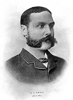 George Frederick Grace (13 December 1850 – 22 September 1880) was an English first-class cricketer active from 1866 to 1880 who played for Gloucestershire and the United South of England Eleven (USEE). He played in one retrospectively recognised Test match for England. He was born in Downend, near Bristol and died in Basingstoke, Hampshire. A right-handed batsman who bowled right arm fast roundarm, he appeared in 195 matches that are generally rated first-class for statistical purposes.[fc 1] In these matches, Grace scored 6,906 runs with a highest score of 189*. An outstanding fielder and occasional wicket-keeper, he held 170 catches and completed three stumpings. He took 329 wickets with a best performance of eight for 43.[1][2]
