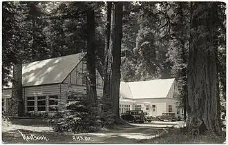 Beyond the short-lived postal designation, the Hartsook name is memorialized in a street in the San Fernando Valley, running along the former Lankershim property. In close proximity is Hesby Street, named after Bess Hesby Hartsook.[3] In Humboldt County, Hartsook Creek,[9] a tributary of the South Fork Eel River, and a redwood tree called "the Hartsook Giant" remind visitors of the family name.[15] The Hartsook Inn was rebuilt and survived under a succession of owners (and another fire in 1973) until the 1990s, when the last operator sold the property to the Save the Redwoods League after threatening to log the Giant to stave off bankruptcy.[16]