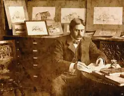 Savage studied under prominent Boston architect Robert Swain Peabody, who had designed a house in Northeast Harbor for his brother-in-law Charles Eliot, and worked at Peabody's firm Peabody & Stearns as an office boy and apprentice from 1884–1886.[6] It is partly due to this tutelage that Mount Desert Island has a wealth of shingle-style architecture.[7]