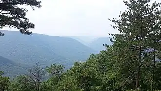 The Fred Woods Trail is a 4.5-mile (7.2 km) loop hiking trail in Elk State Forest in north-central Pennsylvania, United States.[1] The trail visits three significant vistas over the valley of the Bennett Branch of Sinnemahoning Creek, and several large rock formations.[2] The trail is known for requiring almost no climbing to reach its vistas on top of the Allegheny Plateau.[3]