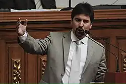 Freddy Guevara (born 3 April 1986) is a Venezuelan politician. He was elected deputy to the Venezuelan National Assembly for Circuit 2 of the Miranda State (made up by Municipalities of Chacao, Baruta, El Hatillo and the parish Leoncio Martínez del Municipio Sucre) representing the Democratic Unity Roundtable (Mesa de Unidad Democrática, MUD) in the parliamentary elections of December 6, 2015.[1] He has been a key figure of the opposition to Nicolás Maduro, Guevara was arrested in July 2021 charged with crimes against the state. The United States and others condemned the arrest as politically-motivated.[2] In mid-August, he was freed as part of negotiations between the Maduro government and the Venezuelan opposition.[3]