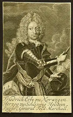 Frederick of Schleswig-Holstein-Sonderbourg-Wiesenbourg (Hasselhecke, Hessen-Homberg, 2 February 1652 - Wiesenburg Castle, 7 October 1724) was the 2nd Duke of Schleswig-Holstein-Sonderburg-Wiesenburg and an Imperial Field Marshal.