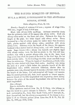 - ^ F. A. A. Skuse (1894) [1895] The banded mosquito of Bengal. Indian Museum Notes. 3: 20
