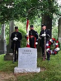 Aiken died in Washington on December 23, 1878, as a result of heart-related illness, possibly resulting from wounds he incurred during the war. He is buried in Oak Hill Cemetery in Washington, where his grave was originally unmarked. However, the Surratt Society of Clinton, Maryland (the town formerly known as Surrattsville) conducted a campaign to raise funds to place a tombstone on the unmarked grave. On June 14, 2012, a gravestone was placed at the site, in a dedication ceremony attended by descendants of Aiken's family.[4]