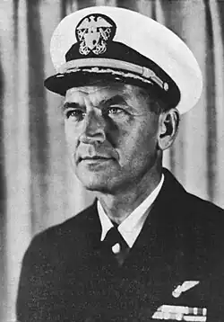 He then commanded Fleet Air in Alameda, from April 1967 to March 1968. His final assignment was as Commander of the Hawaiian Sea Frontier, Commandant of the Fourteenth Naval District, and Commander Fleet Air in Hawaii, from March 1968.[1] While serving in these roles, he was actively involved in NASA's Apollo program and was commended personally for his contribution for the successful recovery of the Apollo 10 astronauts in the South Pacific, on May 20, 1969.[2] He also oversaw the opening up Barbers Point in Hawaii to surfers and allowed fishermen to fish in Pearl Harbor.[9] He retired from the Navy on July 1968.[10]
