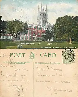 Up to 1902, the back of the postcard could only display the address, and a message had to be squeezed into any margin(s) around the image itself. In 1902, the British postal authorities were the first to allow the now-standard divided back. Other countries quickly followed, although the US quite late in 1907.[3]