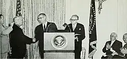 President Lyndon B. Johnson appointed him as chairman of presidential commissions, including the Commission on Postal Organization and, in 1967, to a special mediation board in a railroad dispute. President Richard M. Nixon appointed him as a governor of the United States Postal Service and, from 1972 to 1974, as its chairman.[2] He was on the cover of Time on May 29, 1964.[1] He received the Presidential Medal of Freedom in 1964 and the John Fritz Medal in 1965.[4]
