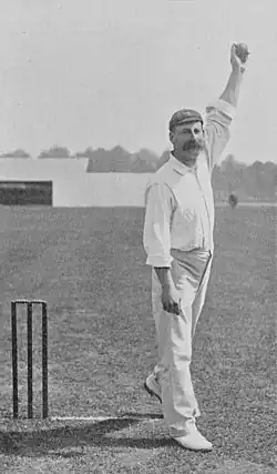 Martin played regularly after 1886[8] and, although he was considered "disappointing"[4] in 1887, in a year in which Kent were poor,[7] he established himself as a "top-class" bowler, taking 60 wickets for the county in 1888, the season he was first paired with Walter Wright.[9] Martin and Wright bowled together between 1888 and 1891, delivering two-thirds of the overs Kent bowled during that period. They bowled unchanged for the county in three complete matches and in 10 innings and formed the basis for Kent's bowling attack in the early years of the County Championship.[4][10]