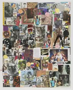 In 2003, Weston showed collages in a group exhibition called "Release" that was organized by Visual AIDS and appeared in the Museum of Contemporary African Diasporan Arts. Sally Block and Laurie Cumbo were its curators.[9] In 2011, he was given a retrospective exhibition called "For Colored Boys Who Have Considered Suicide When All You Ever Needed Was the Blues". It was held in the Rankin Art Gallery of Ferris State University.[14] Later that year, his work appeared in a group show called "Stay, Stay, Stay" sponsored by Visual AIDS at La MaMa La Galleria and three years later he showed with another group in Davidson College's Van Every Gallery.[15][16] Other group shows in this period included "Out of Bounds" at Leftfield Bar on the Lower East Side of Manhattan (2015), "Art AIDS America" at the University at Buffalo and three other sites (2016), and "Persons of Interest" at a Manhattan bookstore called Bureau of General Services—Queer Division.[6][17][18][note 2] He showed collages in four group shows during 2017 ("Intersectional Identities" at Clifford Chance in New York, "Found: Queer Archaeology; Queer Abstraction" at the Leslie-Lohman Museum of Art in New York, and "AIDS at Home" at the Museum of the City of New York, "Cut Here: Matt Keegan, Siobhan Liddell, Frederick Weston" at the Gordon Robichaux Gallery).[6][19][20] The following year, he appeared frequently in group shows and in panel discussions in which he often showed slides of his work. These included a panel called "Fag, Stag, or Drag?" with John Neff at Artists Space in New York, a panel of poetry readings at Gordon Robichaux, a group show called "Proposals on Queer Play and the Ways Forward" at University of Pennsylvania's Institute of Contemporary Art, a panel on "Visual Arts and the AIDS Epidemic" at the Whitney Museum of American Art, a group called "This Must Be the Place" at the 44 Walker Street Gallery in New York, a group called "A Page from My Intimate Journal" at Gordon Robichaux, a group called "Queer Artist Fellowship: Alternate Routes" at the Leslie-Lohman Museum, and a two-person show called "Inside, Out Here" at La MaMa La Galleria.[2][21][22][23][24][25][26][27]