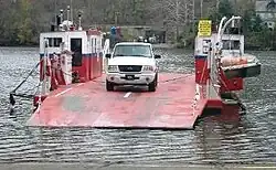 The Fredericktown Ferry (nicknamed Fred) was a cable-driven ferry that operated on the Monongahela River in southwestern Pennsylvania[1] about 30 miles south of Pittsburgh from 1948 until May 2013. The ferry consisted of a 60-foot steel boat that could hold up to 6 vehicles at a time.[1] It connected the village of Fredericktown in Washington County with the village of La Belle in Fayette County which are separated by the 400 feet (120 m) width of the river. The nearest bridge crossing is about 4 miles (6.4 km) north via the PA Turnpike 43. In 2013, the ferry cost $2 per motor vehicle and $0.50 per pedestrian and was subsidized by Washington and Fayette Counties.