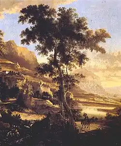 He painted French, Italian, and Dutch landscapes. To finish these scenes, contemporaries specialized in painting figures collaborated with him, such as Adriaen van de Velde in Amsterdam, Theodor Helmbreker in Paris,[4] and at times Johannes Lingelbach, and Nicolaes Pieterszoon Berchem.