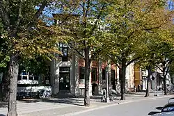No. 104, on the corner of Allégade, was completed in 1871 to designs by Johan Schrøder and was listed in 1978.[5]