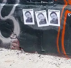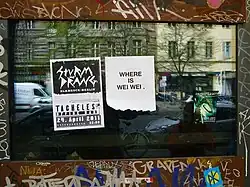The Free Ai Weiwei street art campaign was a series of protests during the PRC government's secret detention of Chinese artist Ai Weiwei for 81 days in 2011,[1] organised by Hong Kong artists and art supporters. Various slogans calling for the immediate release of the artist such as "Free Ai Weiwei", and "Who's afraid of Ai Weiwei" accompany stencilled images of Ai were applied onto pavements, pedestrian overpass, and building walls all over Hong Kong,[2][3] and similar posters and signs were displayed worldwide.[4]
