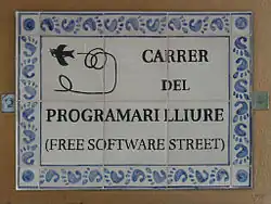 Free Software Street (Catalan: Carrer del Programari Lliure) is a street in the town of Berga in Catalonia, Spain. It is the first street in the world dedicated to the free software movement. It was officially opened on 3 July 2010.[1][2]