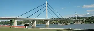 Liberty Bridge (Serbian: Мост слободе, romanized: Most slobode) is a cable-stayed bridge on the Danube river in Novi Sad, Vojvodina, Serbia. The bridge was opened for traffic on 23 October 1981. During that time, the bridge was the world record holder in the category of bridges with cable-stayed design. It was destroyed during NATO bombardment on 3 April 1999. It was rebuilt from 2003 to 2005 and reopened on 7 October 2005.
