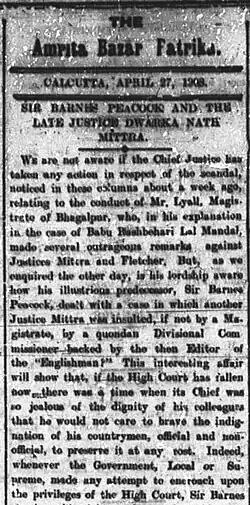 During the reign, administration was claimed to have involved in direct and self-censorship, leading some newspapers to stop publishing articles after licenses were revoked. Prior to the Indian Rebellion of 1857, the press was actively involved in independence movement and in demonstration coverages, leading the government to get involved in self-censorship on the press freedom. Later, Lord Lytton enacted Gagging Act to control the publications in the subcontinent, and while it compelled every newspaper, particularly English-language publications, the media organizations had to apply for a license upon ensuring "nothing was written against the government". The Gagging Act didn't affect the media, and it continued working until the new measures were taken. During the 1870s, the regional newspapers, including Amrita Bazar Patrika published vernacular language were also involved in encouraging people against the rule. Amrita Bazar Patrika, 1868's Bengali weekly newspaper caught government attention after it published about Indigo revolt.
