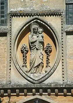 The Wesleyan chapel was completed in 1807.[9] It is now Freeland Methodist Church. The Gothic Revival architect John Loughborough Pearson designed the Church of England parish church of Saint Mary the Virgin, parsonage and parish school.[2] [7] The Taunton family paid for the church and parsonage to be built in 1869 and the school in 1871.[2] The church is high Victorian Gothic Revival, with stained glass and decoration by Clayton and Bell and 13th-century-style paintings of Jesus' Passion and Transfiguration.[7]