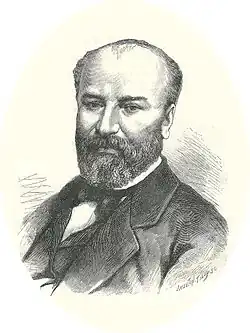 Unlike his predecessor, Émile Mellinet was a long-standing Freemason. The son and grandson of a Freemason, he was initiated at the age of 16 in Thionville, before being raised to Companion, then Master in the Nantes lodge "Mars et les Arts".[39] At the time of his election as Grand Master, he was commander of the Seine National Guard. When he was elected, the Order's council was also largely renewed: the "centrists," such as philosopher Charles Fauvety and lawyer Achille Jouaust,[40] were in the majority. In this liberal period of the Empire, the five years of General Mellinet's Grand Mastership had little impact on French Freemasonry. During his tenure, which spanned the period from the death of Marshal Magnan to the fall of the Empire, lodges enjoyed a certain degree of freedom, and recruitment was more broadly based in circles often opposed to the Empire. Workshops focused on progressive themes, such as the admission of women to Freemasonry and on the deteriorating relations with the Catholic Church, which led to a rise in anti-clericalism in the lodges.[41] However, under his presidency, the GODF grew from 230 to 292 lodges. Tired of the many quarrels between supporters and opponents of compulsory belief in God,[42] but also keen to indulge his cultural passions in his hometown, he did not seek re-election, despite being widely re-elected by the June 1870 convent. Acknowledging his choice, the conventuals elected the secular, republican journalist Léonide Babaud-Laribière[40] as Grand Master.