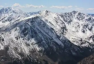 French Mountain is a high mountain summit in the Sawatch Range of the Rocky Mountains of North America. The 13,966-foot (4,257 m) thirteener is located on the Elbert Massif in San Isabel National Forest, 13.0 miles (20.9 km) southwest by west (bearing 231°) of the City of Leadville in Lake County, Colorado, United States.[1][2][3]