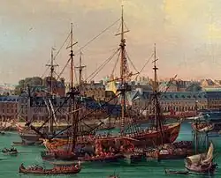 Cardinal Richelieu personally supervised the Navy until his death in 1643.[12] He was succeeded by his protégé, Jean Baptiste Colbert, who introduced the first code of regulations of the French Navy and established the original naval dockyards in Brest and Toulon.[12] Colbert and his son, the Marquis de Seignelay, between them administered the Navy for twenty-nine years.[12]