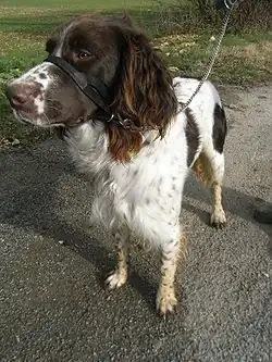 James de Connick established the first breed standard for the French Spaniel in 1891.[8] At the turn of the 20th century, the numbers of French Spaniels dropped so low that they nearly became extinct due to competition from foreign sporting dogs, in particular as French hunters chose to hunt particularly with English breeds of hunting dogs.[3] A French priest named Father Fournier undertook the task of gathering the remaining French Spaniels in his Saint Hillaire kennels in order to preserve the breed. There he built the lineages that are representatives of those we now have.[3] The French Spaniel Club was founded in 1921, with Father Fournier as the president of the association.[8] The modern French Spaniel is one of a group of recognised French Spaniels, including the Brittany, Picardy and Blue Picardy.[9][10]