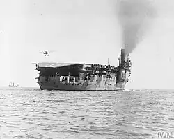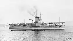Béarn was an aircraft carrier converted from an incomplete Normandie-class battleship for the Marine nationale (French Navy) during the 1920s. Entering service in 1928, the navy intended to use her to develop tactics and techniques for carrier aviation. The only aircraft carrier France produced until after World War II, the ship played a minor role in early stages of the war, training in home waters and conducting pilot training.